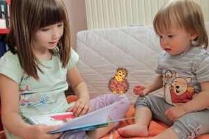 Hannah und Clara mit ihrem Freund, dem kleinen Igel Richie Riegel